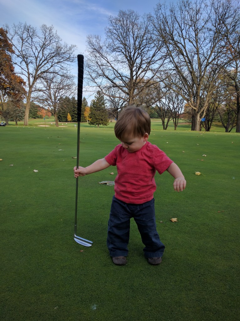 Having children puts a different dimension on time. This year felt like three months, and a full day often feels like three hours and all you’ve done is walked around the block, picked bananas from your hair, and helped your kid open and close a garbage can 30 times. Sam wakes at 6 am and goes to bed at 7 pm. If I golf in the morning, I miss the most fun part of the day — playing with Sam and mom, eating breakfast, putting him down for a nap. Playing in the afternoon means forfeiting Team Nap Time from 2–3:30. And If I play in the evening, I miss the hardest time to be a single parent: dinner, bath, bedtime.